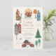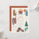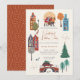 Bjud in gäster till din julfest med stil med vår moderna festliga julstadsbild i Amsterdam, stor julgran och små ljus, solen går ner, Musikband spelar på bron över kanalen i staden Amsterdam Xmas Holiday snöscen landskapsillustration. Originalkonst av Caroline Bonne Müller