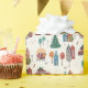Din julfest i stil med vår moderna festliga julstadsbild i Amsterdam i vävnadspapper, stor julgran och små ljus, solen går ner, Musikband spelar på bron över kanalen i staden Amsterdam Xmas Holiday snöscen landskapsillustration. Originalkonst av Caroline Bonne Müller