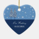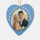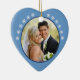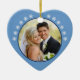 Denna prydnad är en underbar minnessak av ett bröllop med ett vinterunderlandtema. Bekläda presenterar ett foto av bröllop kopplar ihop i en cirkla med liten vitsnöflingor omkring. Baksidaen innehåller bröllop daterar och en koppla ihop av stilfulla grästräd med snö på dem. Den mycket små snöflingor som omkring flyter, tillfogar till den nyckfulla platsen. Elegant yet modern design. Denna prydnad gör en underbar beställnings- gåva för en gift par.