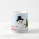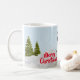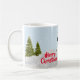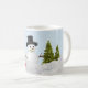 Denna snömannen mugg skapades från en grafiskt utformad snöman med överlägg av snö och granar. Personifiera denna jul mugg med dina egna ord eller köp som visas med God Jul.