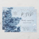 Tallgrenar och snöflingor med snö rsvp. En vacker inbjudan som kan anpassas med ditt namn. Välj "anpassa"-knappen för att ändra teckensnittsstil, färg och storlek.