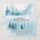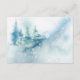 Vacker akvarell scen av vinterundret med gran- och tallträd på en snöfylld bakgrund.