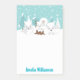 Dessa söta och roliga post-it-lappar kan anpassas med ett namn. Designen visar en bedårande familj av fjällrävar i en vinterundretsmiljö med snötäckta träd. I bakgrunden syns en turkosblå himmel och fallande snöflingor.