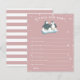 Söta vinterundret tema för bebis shower önskningar för bebis kort med en illustration av pingviner på ett isberg med snö på en rosa bakgrund. Texterna är redigerbara. Perfekt aktivitet att spela under showern och kommer definitivt att bli en fin souvenir! Designad för vintersäsongen och högtider.