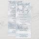En allt-i-ett vinterundrets snö bröllopsinbjudan med elegant typografi. Inbjudan inkluderar ett RSVP-kort som kan klippas av och detaljer om gästinformation. Designad av Thisisnotme
