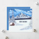 En tyst vinterscen som sträcker sig under en blek, silverfärgad himmel. Snötäckta berg sträcker sig i fjärran, med toppar mjuka av drivande moln.