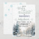 Den här "Vintervonderland"-första födelsedagsinbjudan med en snöig skog som bakgrund utstrålar en magisk och förtrollande atmosfär, perfekt för en vintertema-firande. Bakgrunden till inbjudan är ett hisnande snöigt skogslandskap. Den visar en lugn vintervärld, med höga tallar tungt belamrade med glittrande snöflingor. Träden skapar en majestätisk ram runt inbjudan, vars grenar tycks sträcka sig mot mitten. Sammantaget lovar denna "Vintervonderland"-inbjudan till baby shower med en snöig skog som bakgrund en magisk och minnesvärd firande mitt i ett vintervonderland, och sätter den perfekta tonen för en speciell milstolpe i ditt liv.
