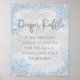 Vintervackra blöja-lottning bordsskylt med vacker blå och silver snöflinga glitterbakgrund. Lägg helt enkelt till den text du vill ha i den teckensnittsstil och färg du föredrar. Dessa vackra vintervackra baby shower-spelskyltar ser bra ut i en dekorativ ram på ditt evenemangsbord.