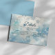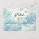 Dela extra bröllopsinformation med stil med detta frostiga dammiga blå detaljkort. Designat med mjuka akvarellsnöflingor och ett romantiskt silverrep-hjärta, är det perfekt för att ge gästerna RSVP-länkar, mottagningsinformation, boende eller vägbeskrivningar. Koordinerar vackert med din vintervackra bröllopsinbjudan serie.