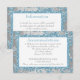 Denna eleganta isblå, silvergrå blommiga FAUX-glitter-damaskmönstrade bröllopsinbjudningskort har en bakgrund av olika vita snöflingor som matchar bröllopsinbjudan som visas nedan. Du kan använda det som ett vägledningskort, mottagningskort eller informationskort. Det skulle vara perfekt för ett vinterundrets-bröllopstema, eller ett jul- eller nyårsaftonsbröllop. Om du behöver andra matchande föremål eller vill ha det i en annan färgkombination, vänligen maila niteowlstudio@gmail.com med din förfrågan.