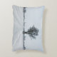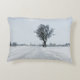 Snowy land i Sverige på en vinterdag i kallet. Stora träd bredvid vägen och en liten by i avstånd. Fotografi.
