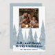 Fånga dina familjeminnesstunder med detta personliga julkort med vinternyland foto. Med en lugn blå och vit vinter skogsscen med ömtåliga snöflingor och stiliserade tallar skapas en magisk bakgrund för ditt favorit familjefoto. Perfekt för att skicka varma högtidliga hälsningar, den anpassningsbara texten låter dig lägga till ditt efternamn och ett speciellt meddelande. Dela din glädje och fira säsongen med denna eleganta och festliga design.