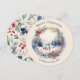 Dela högtidsstämning med detta vackert illustrerade julkort som visar en klassisk vinterscen i vattenfärgsstil. Den tidlösa säsongsdesignen är idealisk för att skicka varma julhälsningar till familj och vänner. Greetings 'God Jul' böjs över toppen av den runda bilden, medan texten nedan är anpassningsbar för att du ska kunna lägga till ditt/dina namn. Baksidan är dekorerad med en vacker botanisk design.