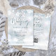En elegant bröllopsinbjudan med chic calligraphy-typografi och ömtåliga snöflingor som faller över dina personliga namn, speciella datum och detaljer om bröllopsfirandet på en vinterfrostbakgrund med information om din bröllopswebbplats och din QR-kod på baksidan. Designad av Thisisnotme