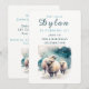 Ett kort för inbjudan till Cute-födelsedag med får under snö. För vinterfödda barn. Anpassa den här produkten genom att lägga till information om party.