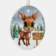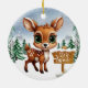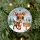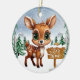 Vinterlig vildliv hjort juldekoration keramisk prydnad! Här finns en söt hjorthona framför en snöig skog, komplett med snöflingor som faller försiktigt. En skylt visar "Let It Snow". Den livfulla, vinterska kartongillustrationen fångar den mysiga glädjen under säsongen, med städsegrön skog. Denna tvåsidiga dekoration hänger vackert på din julgran, krans eller som en festlig present. Perfekt för dem som älskar fantasifulla hjortdjur eller någon som drömmer om en vit jul—skräddarsy för att göra den unik!