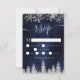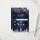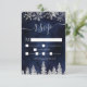 Det är dags att fira ert vinterunderlands bröllop-tema med den lyxmässiga silver glitter-gnistor och silver-träd-skogen i gräs på en marin marin marin marinblå bakgrund i snöflingorna, med en modern glitter-typsnittstypografi. Perfekt OSA kort för vintern under bröllop.