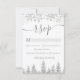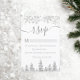 Det är dags att fira ert vinterunderlands bröllop-tema med denna lyxartade silver glitter-gnistor och silver-träd-skog i gräs på en snöflingor, som har en nyfiken vit bakgrund, med en modern glitter-typsnitt. Perfekt OSA kort för vintern under bröllop.