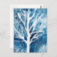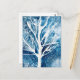 Vintertemat blå och vit vattenfärgsmålning av en vit björk träd med snö bakgrund. Artio originalkonstverk med jultema. Blå och vit jul.