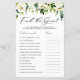 Samla med gästerna för att hitta svaren på frågorna! | Lägg till den här roligten och det här spelkortet till evenemanget. Det här anpassadet "Hitta gästen" med spelkortet innehåller vattenfärgbilder av vita blommor och grönska. Anpassa genom att lägga till dina frågor. Det här möhippan med vit blommigt är en perfekt för möhippor och möhippor i vår och på vintern.