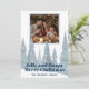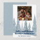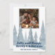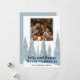 Fånga era familjeminnesstunder med detta personliga julkort med vinternyland och foto. Med en lugn blå och vit vinterlandskapsscen med ömtåliga snöflingor och stiliserade tallar skapas en magisk bakgrund för ditt favoritfamiljefoto. Perfekt för att skicka varma julhälsningar, den anpassningsbara texten låter dig lägga till ditt efternamn och ett speciellt meddelande. Dela din glädje och fira säsongen med denna eleganta och festliga design.