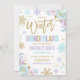 Vintervonderland Födelsedag Guld Lila Snöflinga Inbjudningar