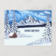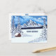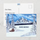 Ett vykort med en vacker vinterscen med snöiga berg, rustik stuga och snötäcka städsegröna träd. Bilden kan anpassas. Du har också möjlighet att lägga till text. Originalkonst av W.B.