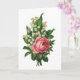En vintageillustration av en oavkortad blom för rosa ros med en rosa rosenknopp som väntar för att blomma, omgav vid läckra vitliljekonvaljer. Detta kort är tom insida för ditt egna meddelande.