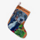 Vinthundjulstrumpa med pastellfärgad målning av en svart vinthund med en vitbröstkorg och ordgod jul på den. Designen kan skräddarsy, både bilder och text. Ideal som slår in för dina hundChristmassy fester eller för någon hund älskare. Denna bild är tillgänglig på andra produkter, där är mer vinthundgåvor som är tillgängliga till och med mitt Zazzle lager "BlueDogAtDingDong".