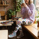 Perfekt passform och bekväma att röra sig i. Helt underbart tryck. Skulle vilja kunna köpa detta som tyg så att man kunde sy en klänning eller att det fanns en klänning färdig i detta tyg.
