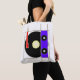 En stiliserad vinylskiva är mittpunkten i en grafisk komposition, flankerad av högtalare i en blå nyans och en tonarm i röd nyans. Designen är inkapslad i en vit kant och ställs mot en neutral vit bakgrund, som projicerar en modern, minimalistisk atmosfär.
