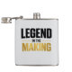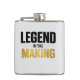 A stylish men's flask with a modern design bearing the phrase LEGEND IN THE MAKING, perfect for the confident man who makes his success step by step.