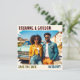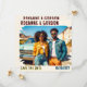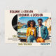 Ett retro vinyl-postomslag ser ut att ha 90- eller 80-bitars vibes för din unika bröllop spara datum. Fotot visas i stänk på omslaget. Namnen visas överst i ett handskrivet utseende med röd skugga. Vid grund sparar du datum och datum för bröllop. På baksidan finns en vinylpost med namn på skivetiketten. Datumet och platsen i bröllop visas i samma färgstarka stil som kortets framsida. Du kan lägga till eller redigera flera linjer ytterligare text, inklusive bröllop webbplats i text- och QR-kodformat. Du kan anpassa all text. De flesta färg och all text kan anpassas i Design Verktyg.