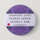 En hörselförlust på 3 tum för Violet abstrakt är designad från en hand plockade färgpenna mandala-design. Den här 3-tumsknappen kan användas för att varna personer som du har svårt att höra. Jag designade detta med ett rött hjärta som en påminnelse om att du är älskad och för dem du talar med om att du uppskattar deras omtänksamhet gentemot dig. Det kommer att göra ge den andra personen uppmärksam på att vara speciell när man pratar. De är underbara som gåva till någon du känner som upplever hörselförlust.