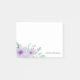 Elegant- och chic-anteckningar innehåller en bukett med violett lila och grönt vattenfärgblommor som kliar ut från hörnet. Anpassa med ett namn, monogram, namn eller ett meddelande längs grund i modern midnattsblått brev.