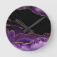 Violet Black Marble Agate Mörk Glamor Golden Rund Klocka