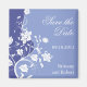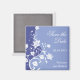 En riktigt vacker spara-till-dejt-magnet. En vit blomstam når höjden på magneten över en rik blå bakgrund. Blommor når ut till ram med din anpassade information. Finns i alternativ färg med matchande produkter.