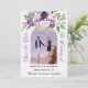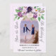 En modern och elegant Spara datum för ett bröllop. En lavendelbakgrund, dekorerad med violett och lila blommor. Anpassa och lägg till ett datum och din namn. Texten: Spara datumet skrivs med ett stort trendig-handskript i stil.