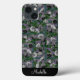 Det här telefonfallet har en elegant blommigt ro mönster i vitt och svart ro på en trädgårdstrellis med en violett bakgrund. Du kan göra mönster på fodral större eller mindre om du vill. Anpassa telefonväskan med ditt namn vid grund eller ta bort namn och fyrkant om du vill ha ett rent mönster fodral. En underbar blommigt i eleganten som gör en underbar gåva eller en gåva till dig själv.
