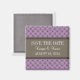 Trendig och chic Finare Lattice Spara datum magneter med en snyggt och en diamant som studerade mönster över en pulserande lila med en bred brunn gräns med två tonlägen. I elegant är spara datum magneter perfekt för att tillkännage ert moderna bröllop. Enkel att anpassa, lägg bara till din bröllop-information i den text fält tillhandahåller. Klicka på Anpassa om du vill söka efter fler anpassningsalternativ.