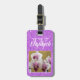Ge mamma, mormor, flickvän eller speciell vän en vacker anpassningsbar, violett glitter akrylisk märkre med ett omhuldat foto som hon kan ta hand om på bagage, väska, ryggsäck eller annan väska.. Bagagetaggen har nu ett foto från ställe som innehåller vackra lilor och vita orkidar. Byt ut platshållarfotot med sitt favoritfoto som ett från Instagram eller om du gillar platshållarfotongen för orkidéblommigten och fotografera behållan. Väljer sten. Fyll i fälten för mallen, ta bort texten eller klicka på anpassa för att välja ett teckensnitt stil, storlekt och färg som du vill använda.