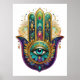 Violet Green Gold Petals Hamsa Turquoise Third Eye Poster