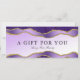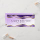 Feminina och lyxaktiga presentkort med violett och guld glitter marble agate mönster och mjuk violett och vit övertoningsbakgrund. Perfekt för skönhetsalonger, hårsalonger, makeup artists, nagelsalonger, spas och så mycket mer!