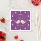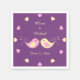 Ett par love birds, ett i rosa med blek gult vinge och ett i gult med rosa vinge, kysser varandra på denna söta bröllop eller möhippa pappra napkin. Bilder placeras på en kompletterande bakgrund av lila med violett som gränsar till omväxlande rosa och gult i en cirkel. Matchande pappert tallrikar finns i vår butik.