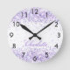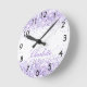 Violet lavender namn-skript elegant rund klocka