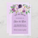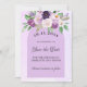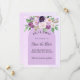 En modern och elegant Spara datum för ett bröllop. Vattenfärgad violett, lavenderbakgrund och en båge ram. Dekorerad med violett och lila blommor. Anpassa och lägg till ett datum och namn. Texten: Spara datumet skrivs med ett stort trendig-handskript i stil.