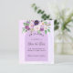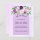 En modern och elegant Spara datum för ett bröllop. Vattenfärgad violett, lavenderbakgrund och en båge ram. Dekorerad med violett och lila blommor. Anpassa och lägg till ett datum och namn. Texten: Spara datumet skrivs med ett stort trendig-handskript i stil. 1 lakan = 1 spara datumet som skrivs ut kant till kant.