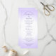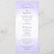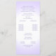 Elegant violett bröllopsprogram-kort är två sidor med ceremonier på framsidan och bröllopsfesten på baksidan.