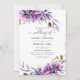 Dusty violet och lila blommigt bröllopsinbjudan med elegant handskriftstypografi designad för att snabbt och enkelt kunna anpassas till dina händelsespecifikationer.
