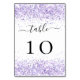 En snyggt vit bakgrund som dekoreras med lila, violett, färgad faux glitter, gnistor. Anpassa och lägga till bordsnumren. Lägg till dina nummer en efter en.